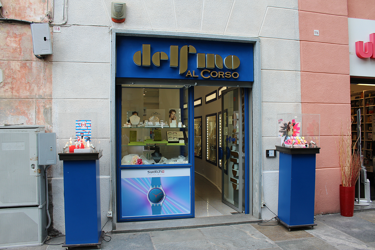 Il negozio giovane, fresco ed attento alle mode della famiglia Delfino, inserito nel cuore dell'area pedonale di Savona. Marchi di gioielleria rinomati e trendy come Dodo, Miluna, Trollbeads, Giovanni Raspini o Amen, ma anche la vastissima collezione di Swatch, altri orologi, pelletteria ed accessori fashion, per un ambiente sempre attento alle nuove tendenze.